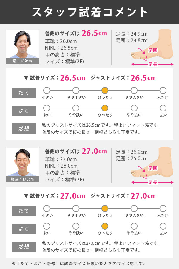 - 履きやすく、毎日履いています。 厚手の靴下を履くときは、サイズを0.5サイズアップの方がよいです。
