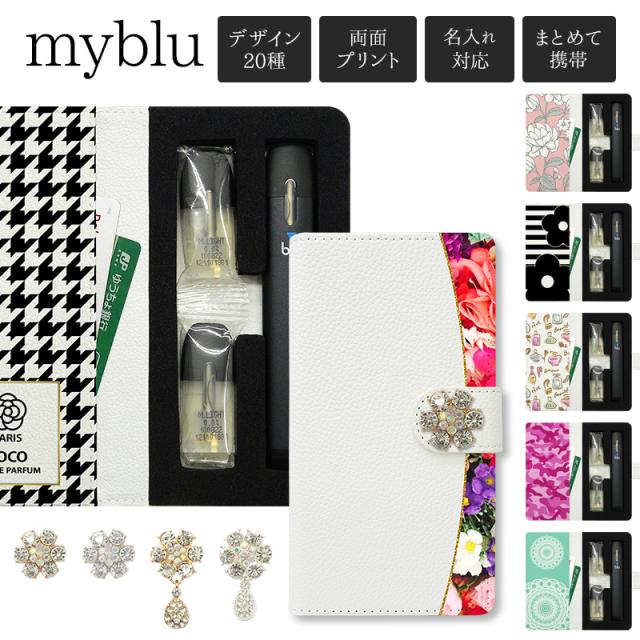 マイブルー ケース myblu 手帳型【両面印刷×キュートデザイン×ゴージャスフラワー】マイ ブルー my blu カバー マイブルーケース タバコ たばこ 煙草 禁煙 喫煙 電子タバコ VAPE ベイプ 収納 革 皮 レザー 女性 レディース 印刷 名入れ ギフト メール便送料無料 受注生産