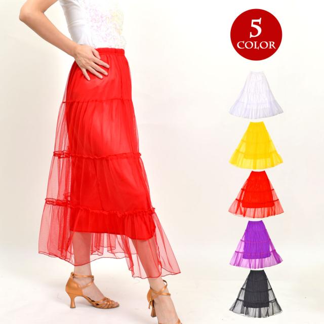 ダンス スカート ベリーダンス 社交 フレアスカート ティアードスカート レディース メッシュ ロング丈 ウエストゴム T94231[M便 4/3] ダンス衣装
