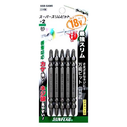 【メール便可】新亀製作所 SUNFLAG サンフラッグ スーパースリムビット #2×85 5本組 SSB-52085