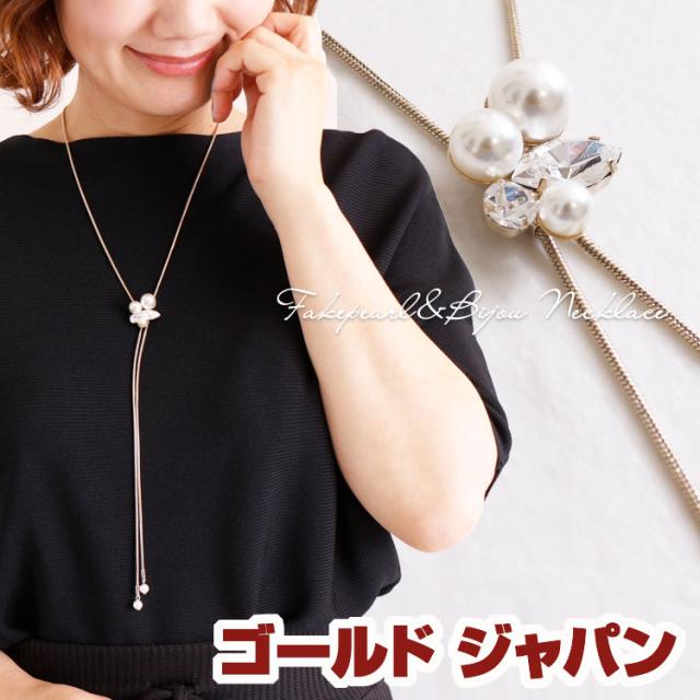 春新作 大きいサイズ パール&ビジューY字ロングネックレス アクセサリー ネックレス ジュエリー ラリエットネックレス パールネックレス パール ビジュー ラリエット チョーカー 春 夏 秋 フリー フリーサイズ F free ゴールド 金 g