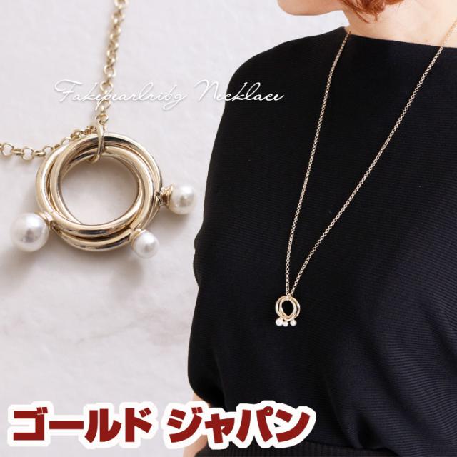 秋新作 大きいサイズ フェイクパールリングネックレス アクセサリー ネックレス ジュエリー パールネックレス リングネックレス リング パール フェイク チェーン ロング 春 夏 秋 冬 フリー フリーサイズ F FREE free ゴールド