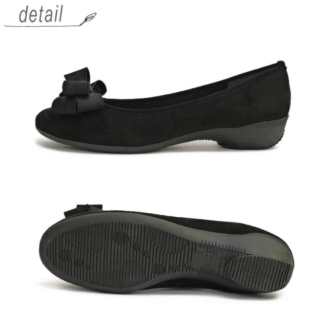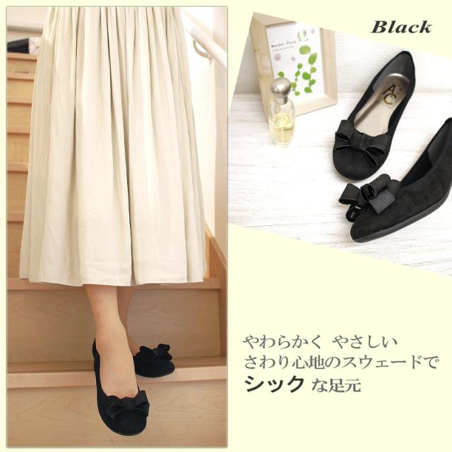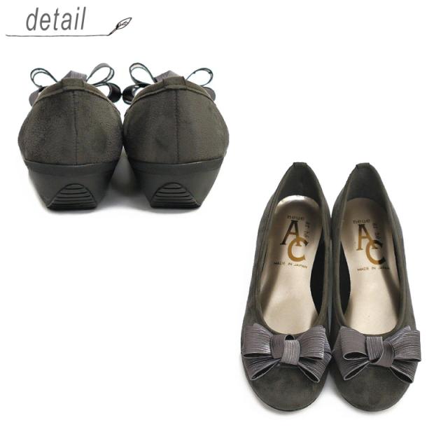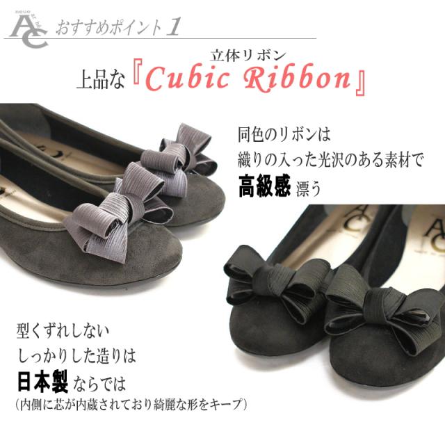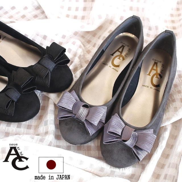 AC バレエシューズ 靴 レディース パンプス 日本製 リボン 黒 グレー フラットシューズ ラウンドトゥ 歩きやすい スウェード