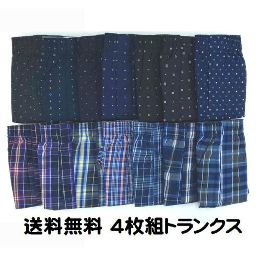 トランクス 4枚組 プリント 格子柄 綿100% メンズ 紳士 インナー 柄パン パンツ お買い得 メール便 送料無料(代引き不可)