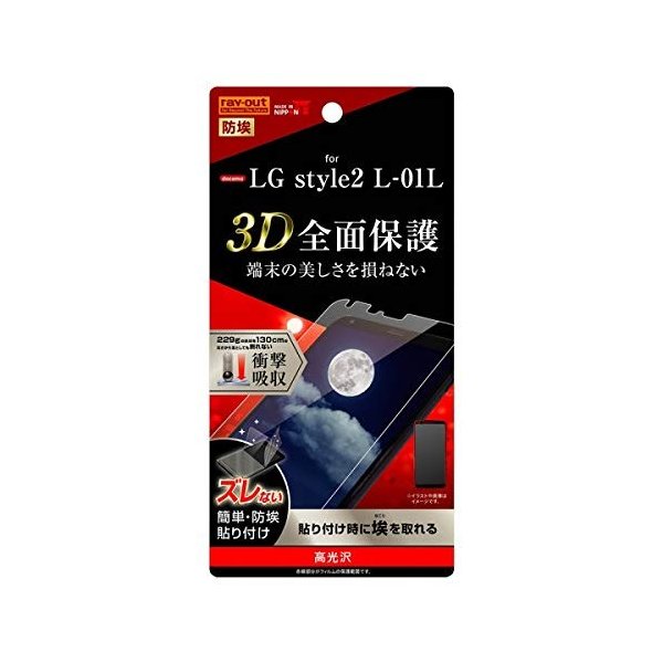 ズレずに貼れてほこりの混入も防ぎます。229gの鉄球を130cmの高さから落としても割れない特有の弾力性と柔軟性により、通常のPETフィルムでは貼る事のできなかった画面の端までしっかり保護します。メーカー型番:RT-LSL1F/WZD3D全面保護端末の美しさを損ねない対応端末:LG style2
