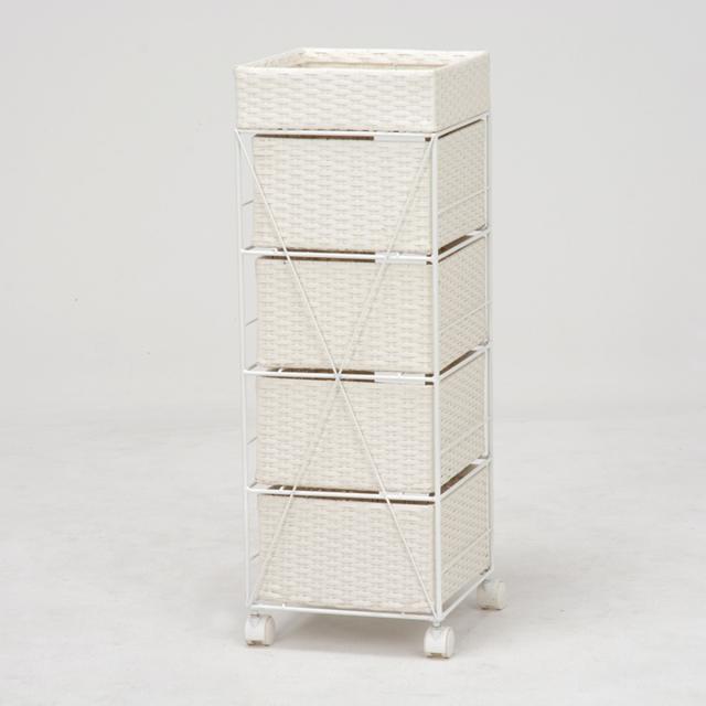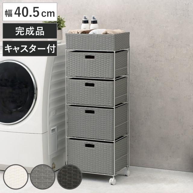ランドリーチェスト 幅40.5cm 4段 引出し キャスター付 完成品 ( ラタン調 ランドリー チェスト ラック 防水 撥水 収納 かご ラタン風 洗濯 ランドリーラック ワゴン 収納ラック 樹脂製 キャスター 編みかご )