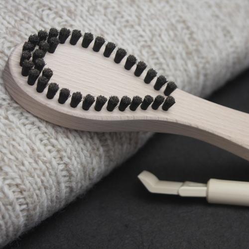 編み目、織り目に沿ってブラシをかけると毛玉が面白いように取れ、生地を傷めません。