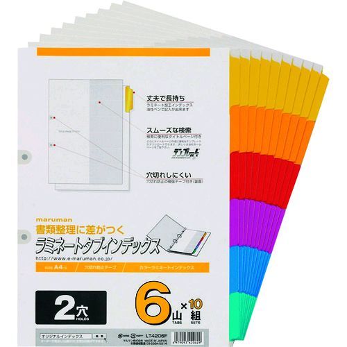 ED3012171 4979093420629 A4 ラミタブ見出し 2穴 6山10組 2穴 A4タテ 6色6山+扉紙