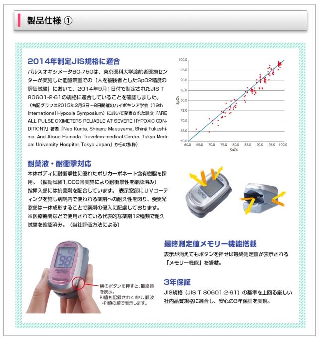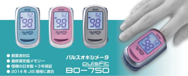 パルスオキシメーター NISSEI パルスフィットBO-750 衝撃に強い!耐薬液・耐衝撃対応・メモリー機能搭載【防滴/健康管理/血中酸素/在宅介護/医療機器】【送料無料】