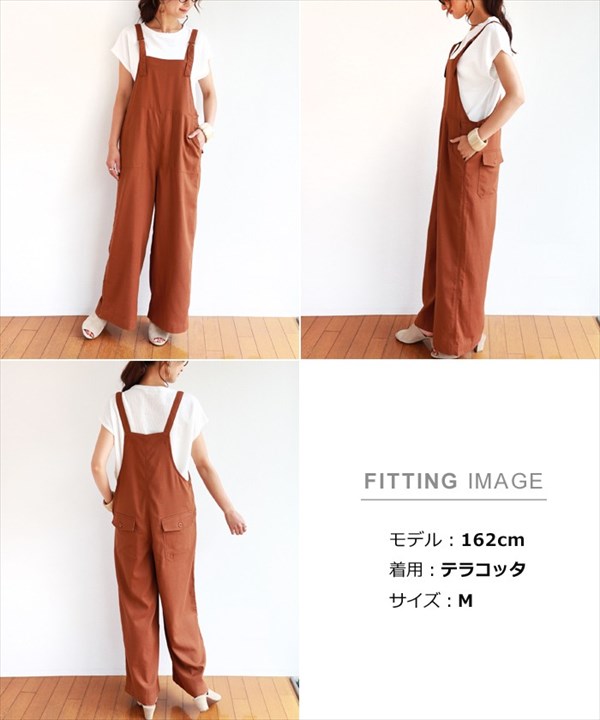 サロペット パンツ レディース リネンブレンド ベイカー ワイド サロペット 夏 無地 オーバーオール ボトムス ストラップ バックポケット カジュアル bottoms pants Ladies ラテカラー ブラック 黒 グレー ベージュ カーキ ネイビー テラコッタ 大人 20代 30代 40代 コーデ