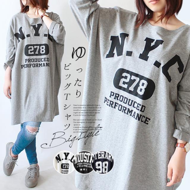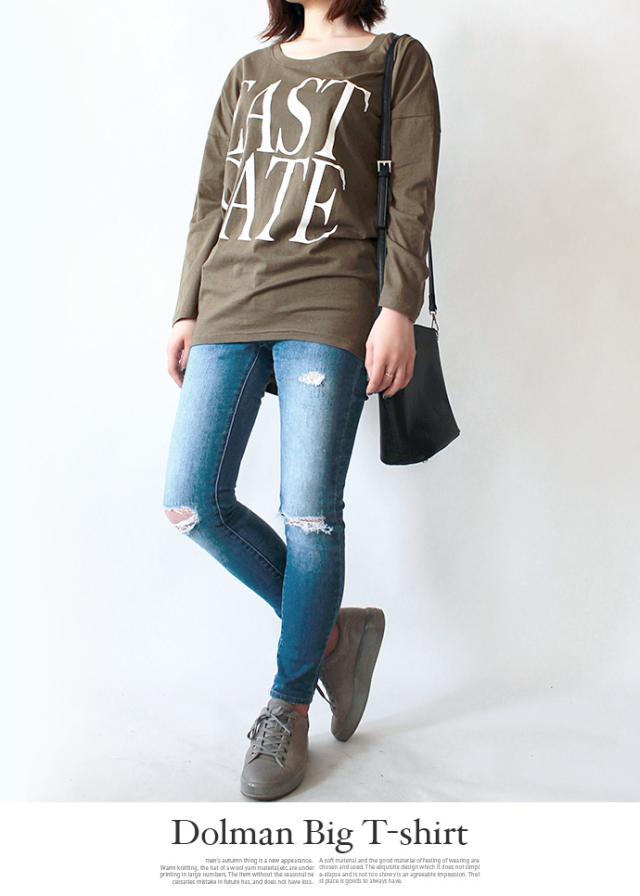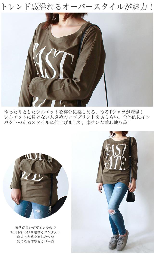 値下げ ロンT Tシャツ ゆるTシャツ ビッグTシャツ レディース 長袖 オーバーサイズ ドルマン 後ろ長め プリント ロゴプリント ビッグシルエット【メ】