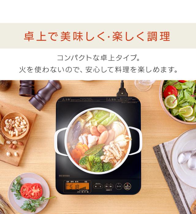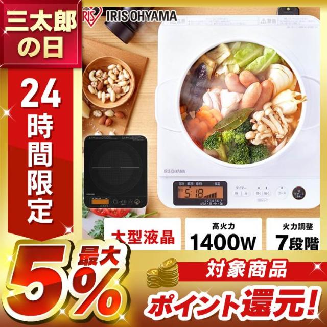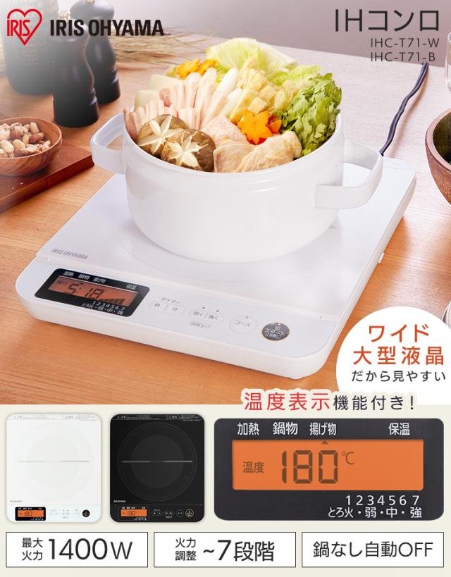 IHクッキングヒーター アイリスオーヤマ 1口 液晶付き 1400W ワイド液晶 吹きこぼれ防止自動温度調整 IHコンロ 卓上 7段階火力調整 IHCT71 ホワイト ブラック 安心延長保証対象