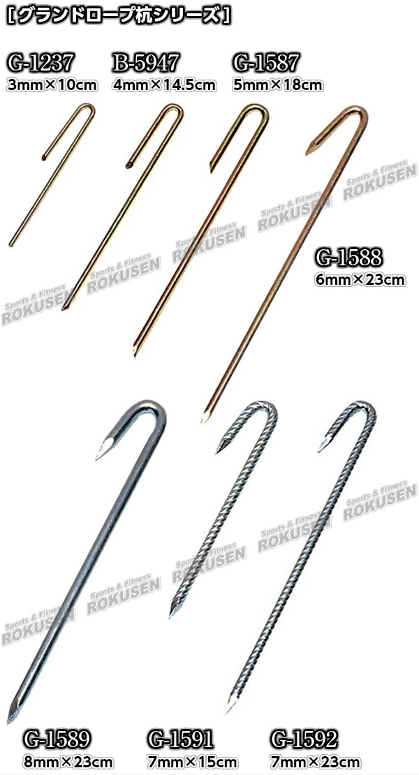 運動会などスポーツイベントのコースや球技コートの設置、仕切りなど様々な場面でご活用いただけるグランドロープ用クイ100本セットです。