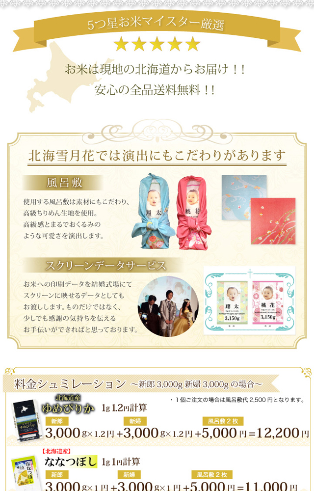【ポイント2倍】結婚式 ウエイト米 『体重米ブライダル ななつぼし』令和5年産 出産内祝い お米 北海道ギフト 写真入り 内祝い 米 名入れ 送料無料 出産祝い お返し 体重米 結婚式 プレゼント 赤ちゃん 贈答 ウエイト米 赤ちゃん米 両親