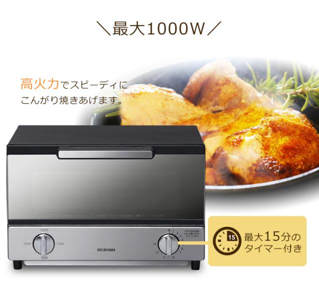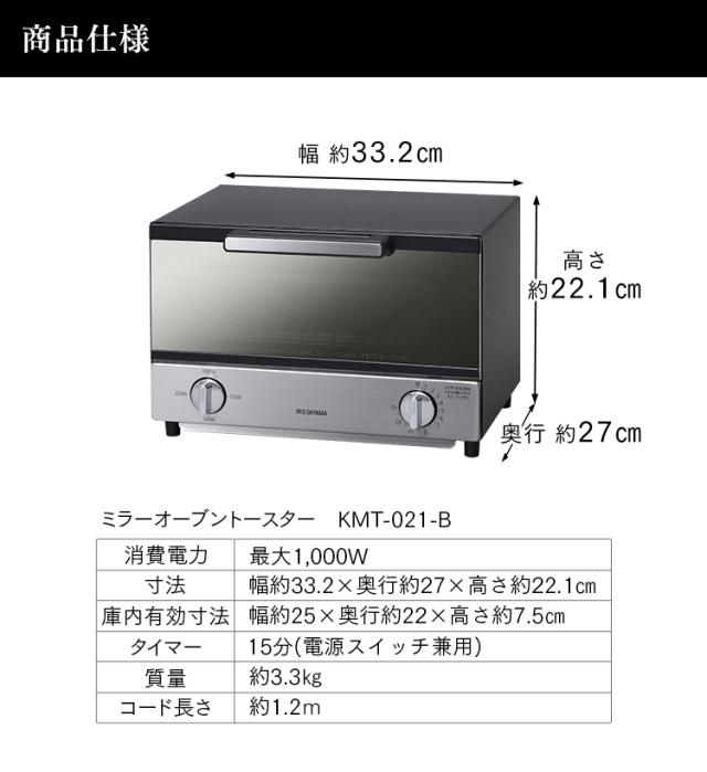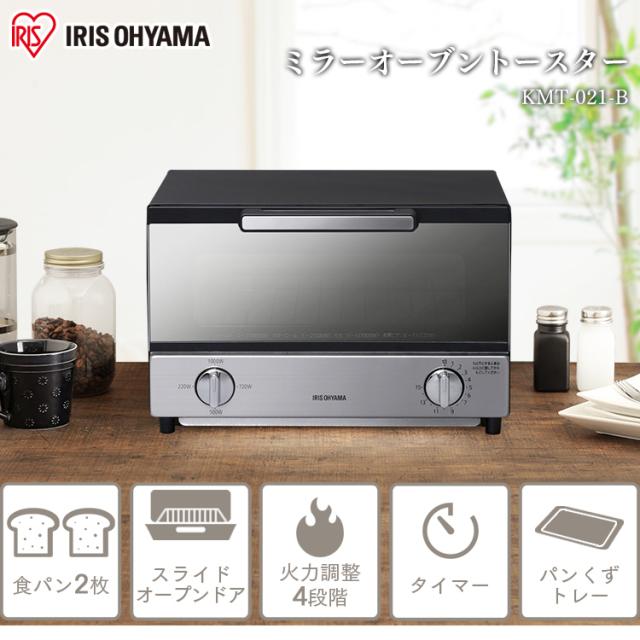 トースター オーブントースター 2枚 KMT-021B アイリスオーヤマ おしゃれ 横型 ミラー 対応 新生活 送料無料 トースター 2枚 ミラーガラス ミラー調 1000W オーブン 一人暮らし おしゃれ モダン