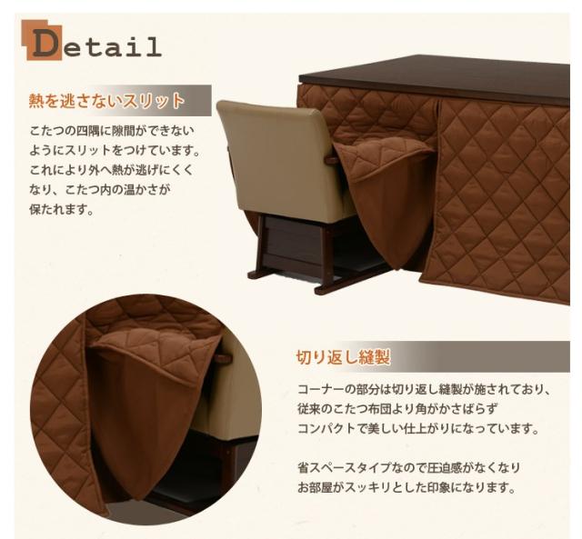 こたつのコーナーには隙間ができないようにスリットが付いており、外へ熱が逃げにくくなっています。