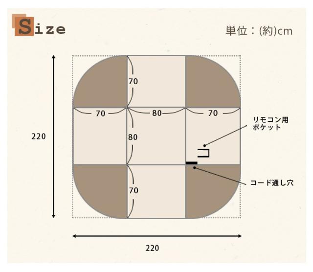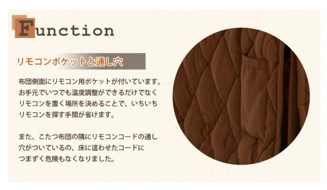 肌触りのよいピーチスキンの生地を使用したダイニングこたつ用掛布団。