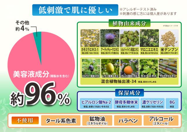 【全成分】■有効成分:水溶性プラセンタエキス、グリチルリチン酸2K■その他の成分:アクリル酸・メタクリル酸アルキル共重合体、濃グリセリン、米デンプン、混合植物抽出液-34、シルバーバイン果実エキス、カモミラエキス-1、酵母多糖体末、アーティチョークエキス、マロニエエキス、ヒアルロン酸Na-2、塩化トリPOE(5)ステアリルアンモニウム、BG、フェノキシエタノール、香料、精製水【効能、効果】肌あれ・あれ性。にきびを防ぐ。油性肌。メラニンの生成を抑え、しみ、そばかすを防ぐ。日やけ・雪やけ後のほてりを防ぐ。肌をなめらかにする。皮膚を清浄にする。