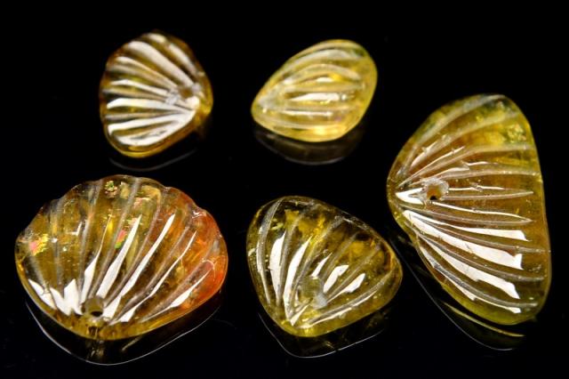 AAAA透明 トルマリン 9-10mm シェル貝殻モチーフ彫刻穴あき 健康運_PRG109-1