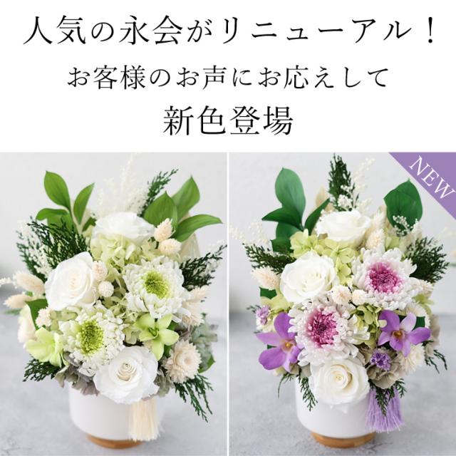 「永会(とこしえ)」は大きめサイズのプリザーブドフラワー仏花で、
