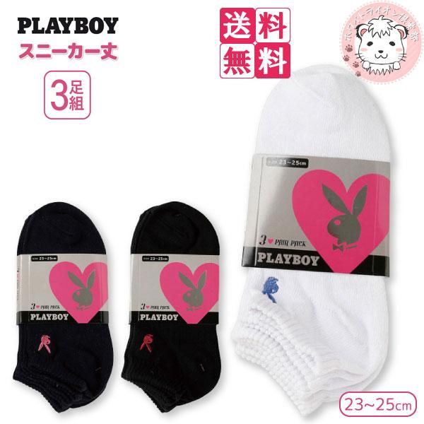 靴下 3足組5セット レディース プレイボーイ ワンポイント刺繍入り スニーカーソックス スクールソックス 23-25cm