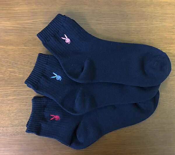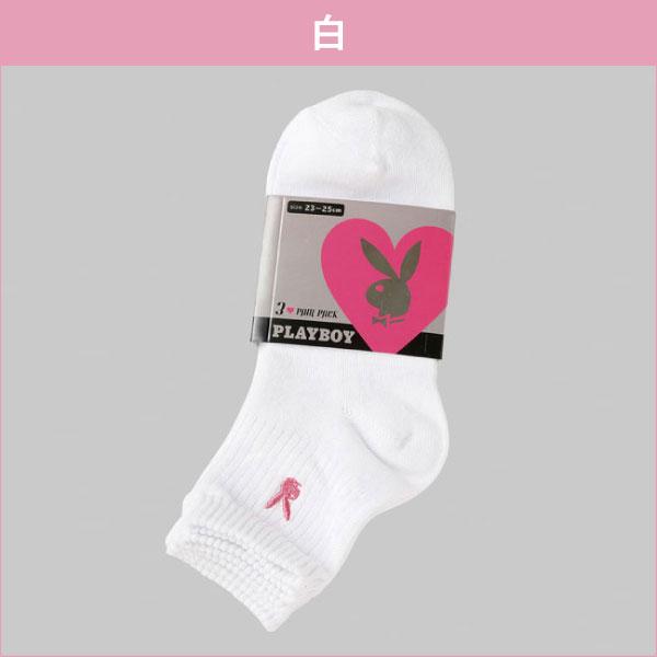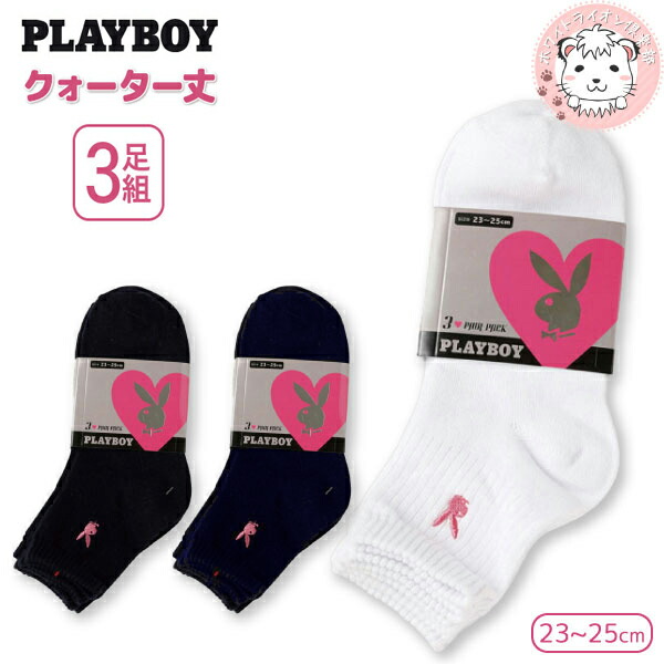 プレイボーイ ワンポイント刺繍入り クォーターソックス 3足組 スクールソックス 23-25cm | 靴下 レディース PLAYBOY クォーター丈 黒 紺 白