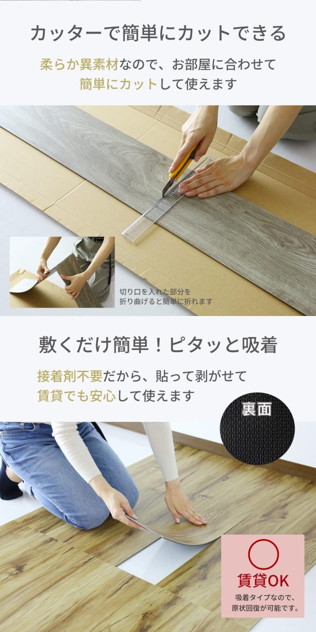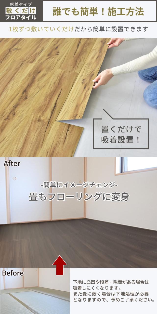 フロアタイル フロアマット カーペット 6畳用(72枚入り) リメイク リノベ リフォーム DIY ウッド 床材 和室 賃貸OK ゾーイ6畳用 ドリス
