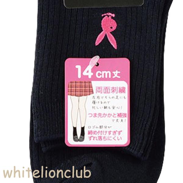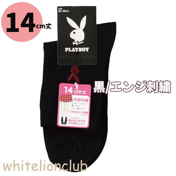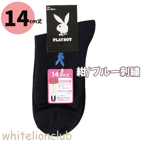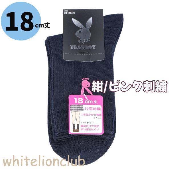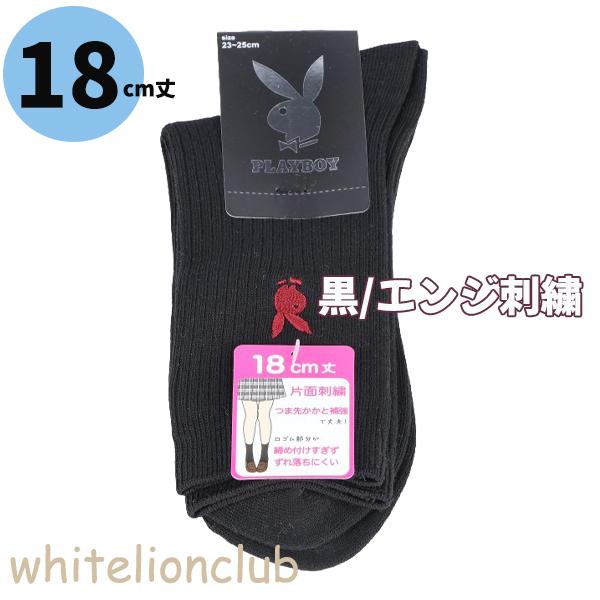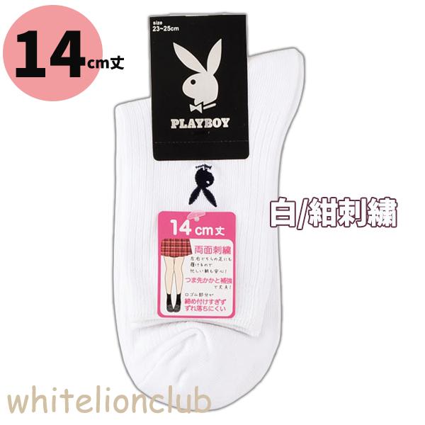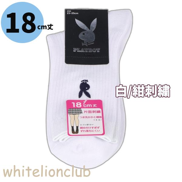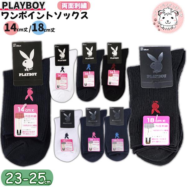 プレイボーイ 両面刺繍入り リブ ソックス 14cm丈 18cm丈 スクールソックス 23-25cm | 靴下 レディース PLAYBOY クルー丈 白 紺 黒