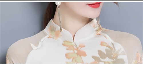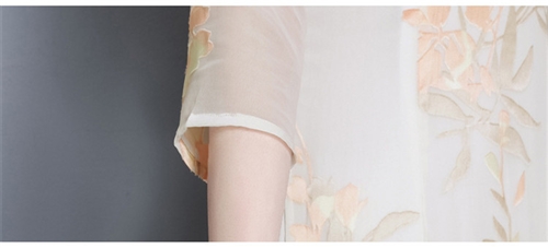 新作 シフォン ロング チャイナドレス風ワンピース エレガント ベージュ