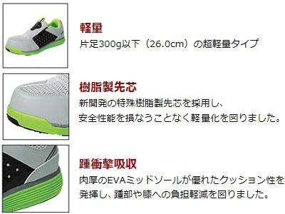 新開発の特殊樹脂製先芯を採用し、安全性能を損なうことなく軽量化に成功しました。
