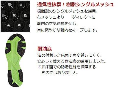 樹脂製のシングルメッシュを採用、布メッシュよりダイレクトに靴内の空気循環を促し、常に爽やかな靴内をキープ。