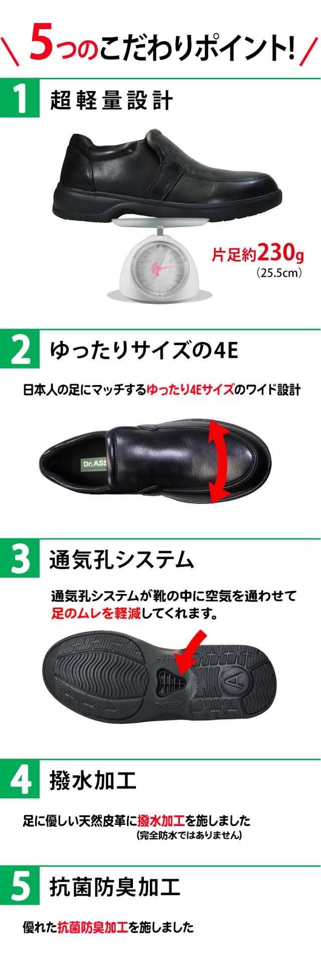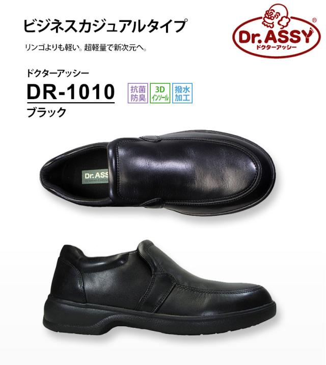 ドクターアッシー Dr.ASSY DR-1010 黒 メンズ カジュアルシューズ 革靴 スリッポン 4E 幅広 ワイド 本革 撥水加工