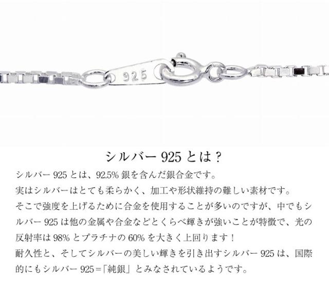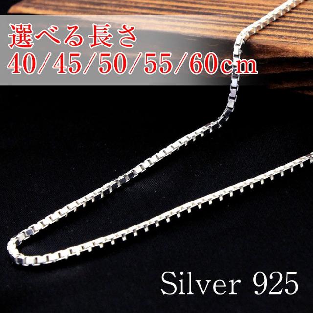 高級感があるベネチアンチェーン(ボックスチェーン)女性に人気のあるチェーンです。幅が1.4mmと細めのチェーンなので小さいペンダントトップに合わせるのがGOOD!長さも5タイプ(40・45・50・55・60cm)あるので、自分好みの長さをお選びいただけます。ベネチアンチェーンはエレガントなコーディネートにもピッタリでどんなスタイルにも合わせやすいチェーンです。使い方はあなた次第のシルバー925ベネチアンチェーンです!