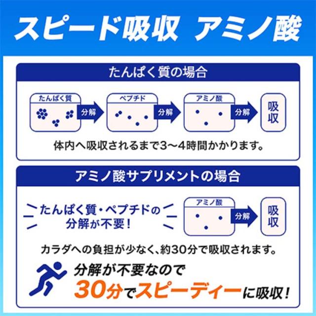 ●アミノ酸は動くカラダに必要なたんぱく質の材料となり、素早く吸収されるので、運動や筋力トレーニング(筋トレ)をしている方、カラダづくりやダイエットのための運動を行う方にもおすすめ。