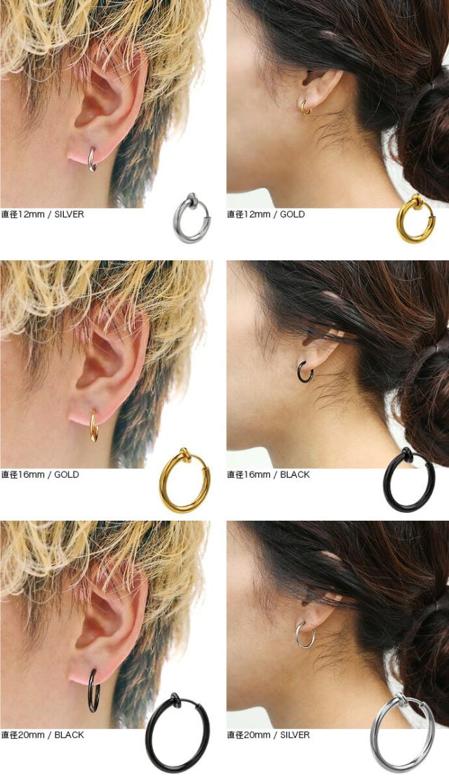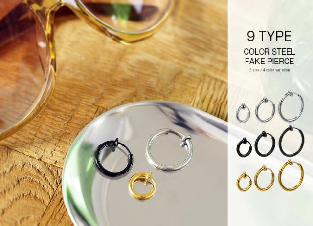 フェイクピアス メンズ イヤーカフ リングカラースチール フェイクピアス ピアス風 イヤリング アクセサリー レディース ステンレス シンプル ノンホール 金属アレルギー 片耳用 (1個売り)