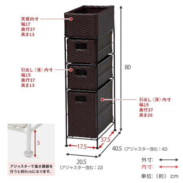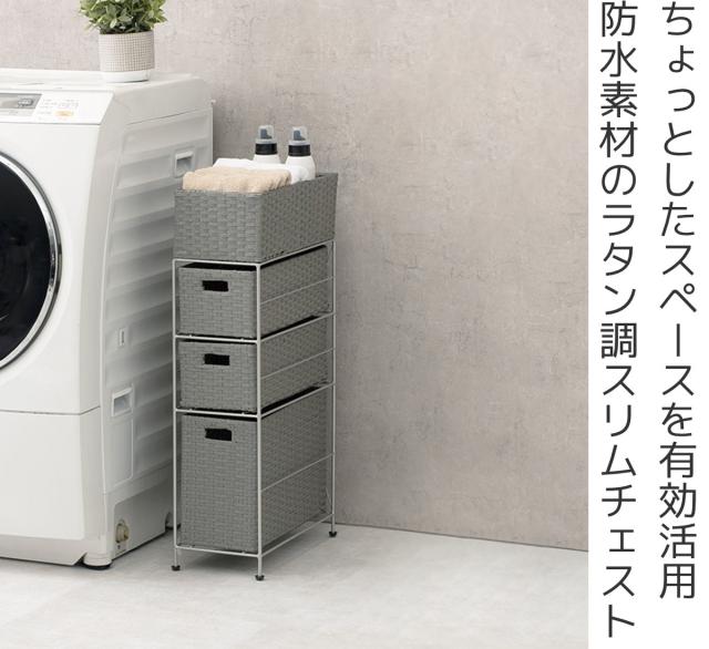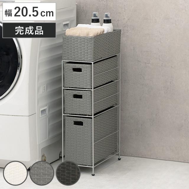 ランドリーチェスト 幅20.5cm 3段 スリムタイプ 引出し 隙間収納 完成品 ( ラタン調 ランドリー チェスト ラック 防水 撥水 収納 ラタン風 洗濯 ランドリーラック 樹脂製 すき間 編みかご )