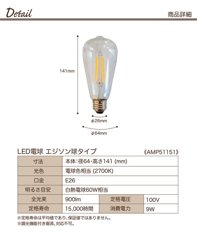 【Ampoule】 LED電球 エジソン球 クリア E26 LED 電球 エジソン エコ 長寿命 フィラメント 低発熱 省エネ 替え電球 節電 インテリア 口金E26 レトロ ヴィンテージ おしゃれ 照明 照明器具 ライト