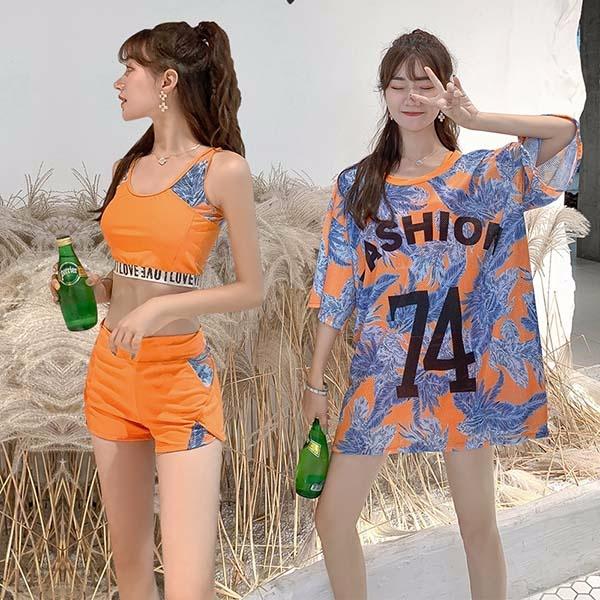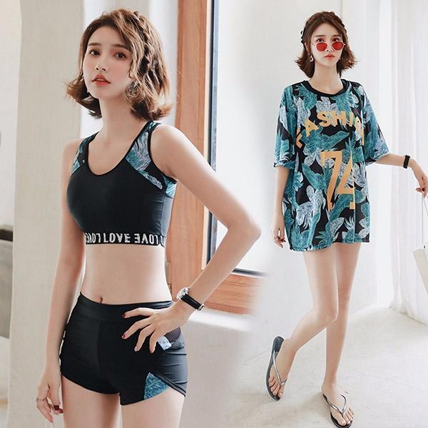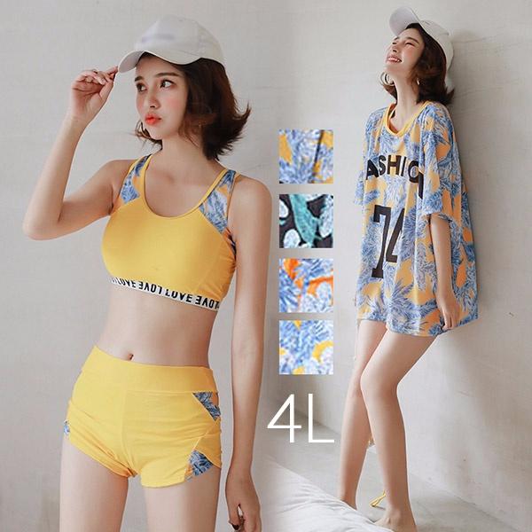 【サイズ有M/L/2L/3L/4L】3点セット 小胸 体型カバー 水着 タンキニ セパレート 大きいサイズ レディース 着痩せ 袖付き パッド付 お尻 お腹カバー オトナ女子 ショートパンツ 20代 30代 旅行 海 温泉 韓国風 大人 女性 da955zezec0