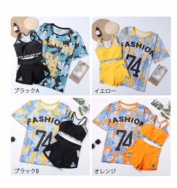 3点セット 体型カバー 水着 タンキニ セパレート 大きいサイズ レディース 着痩せ 袖付き パッド付 お尻 お腹カバー オトナ女子 ショートパンツ