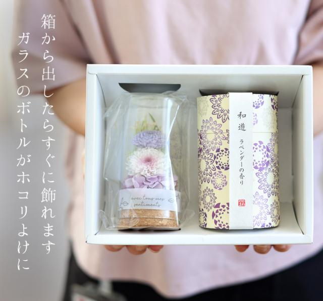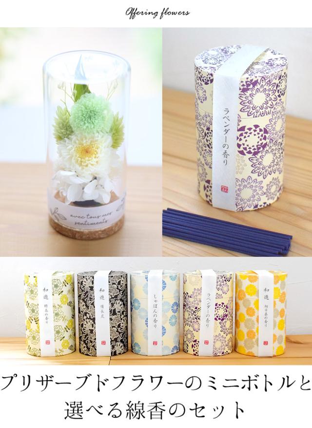 送料無料 仏花 お供え プリザーブドフラワー ガラスボトル 線香 和遊とお供えプリザーブドフラワー in ミニボトル セット お供え お悔やみ お花 お花 喪中見舞い お供え花 仏壇 花 法事 お供え物 贈り物 ブリザードフラワー 供花 喪中見舞い 喪中 お見舞い 年賀欠礼 年末