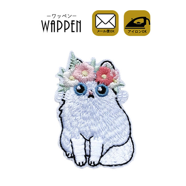 ワッペン ねこ ネコ 猫 花 フラワー 刺繍 アイロン接着 アイロンワッペン 動物 手芸 アップリケ デコ母の日 プレゼント ギフト