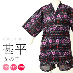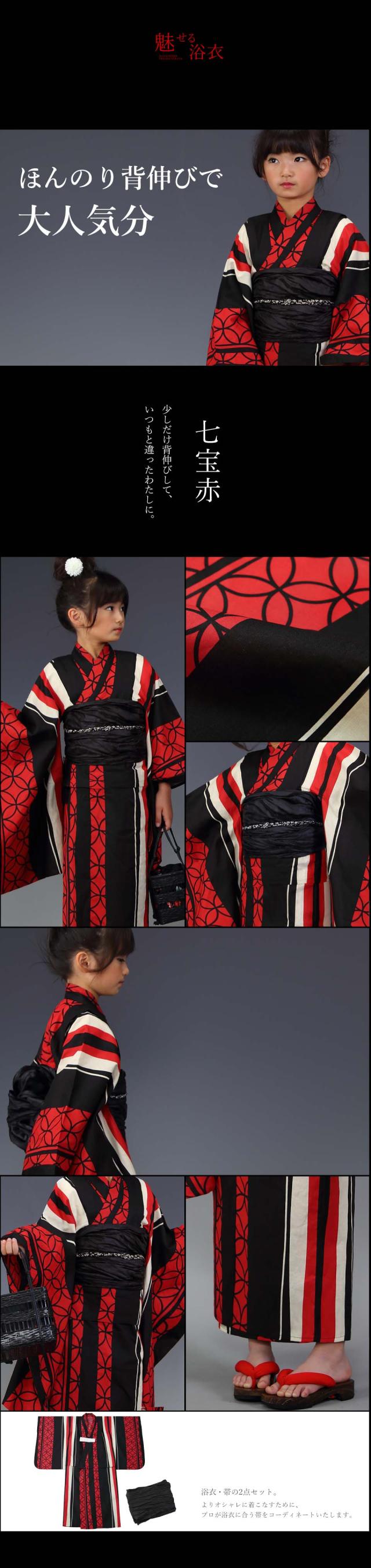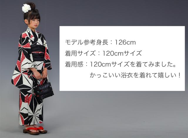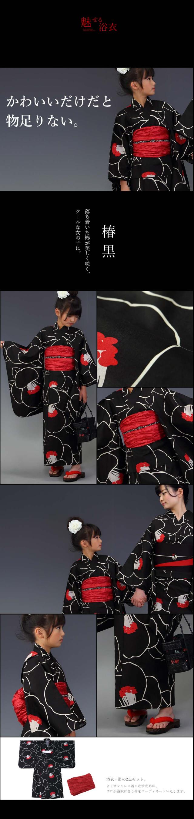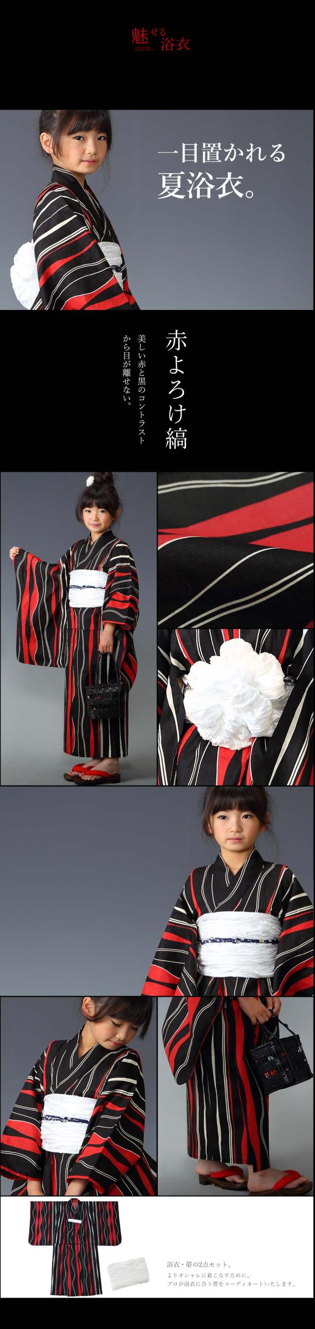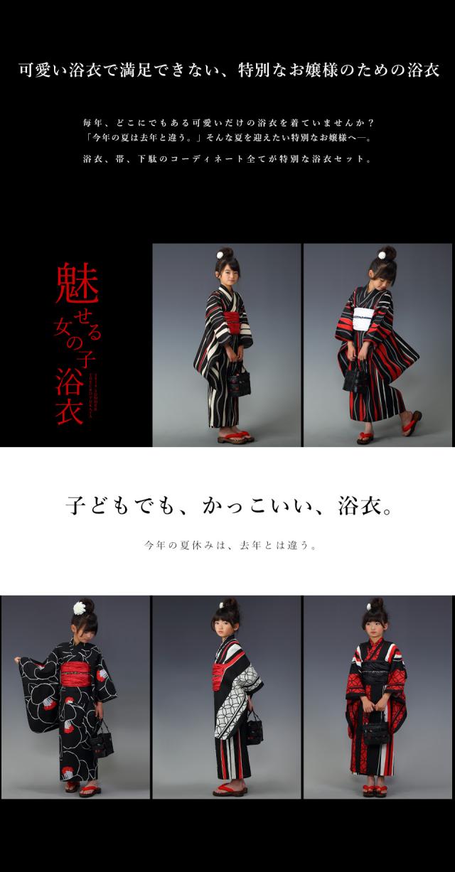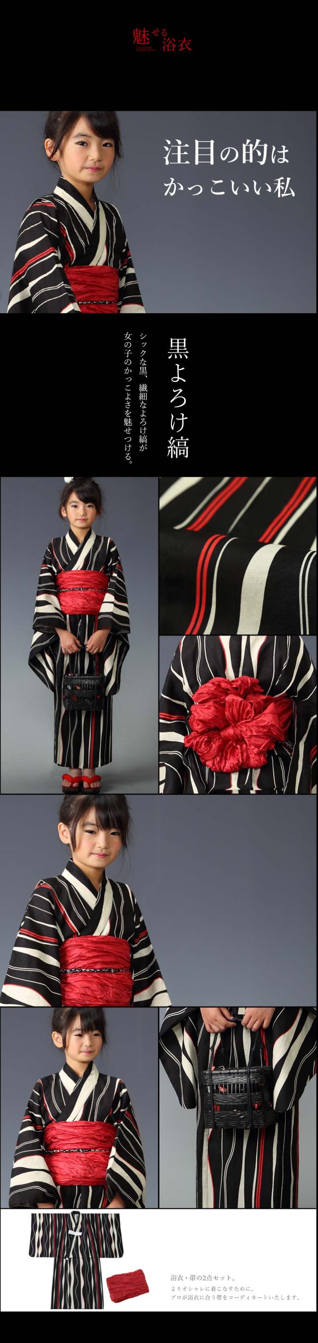 浴衣 女の子 レトロ セット 浴衣+帯 110cm 120cm ジュニア キッズ ゆかた 女児 古典 縞 麻の葉 椿 赤 黒 白 かっこいい