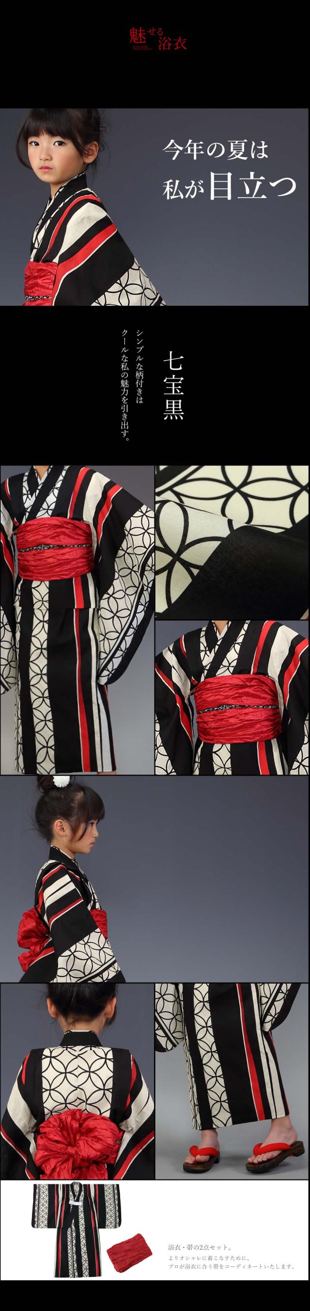 黒(ブラック)、赤(レッド)、白(ホワイト)・生成りを基調としたシックでかっこいい浴衣、帯の2点セット。