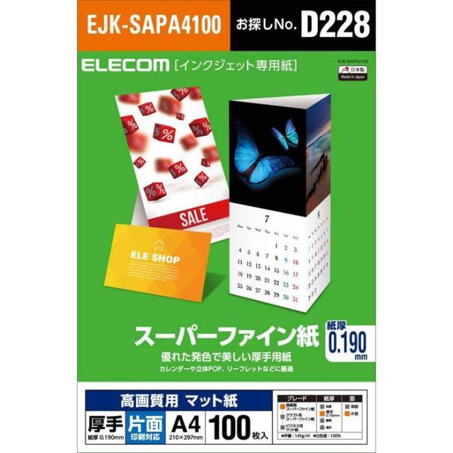 代引不可 高画質用 スーパーファイン紙 マット紙 インクジェット専用紙 片面印刷用紙 A4/厚手/片面/100枚 日本製 エレコム EJK-SAPA4100