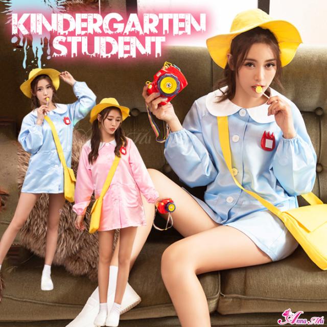 幼稚園児 コスプレ 園児 スモック 制服 名札 バッグ フルセット 長袖 ペア おそろい セクシー コスチューム衣装 パーティー レディース 女性 大人 可愛い セクシー エロ 過激 超過激 ハロウィン 衣装 仮装