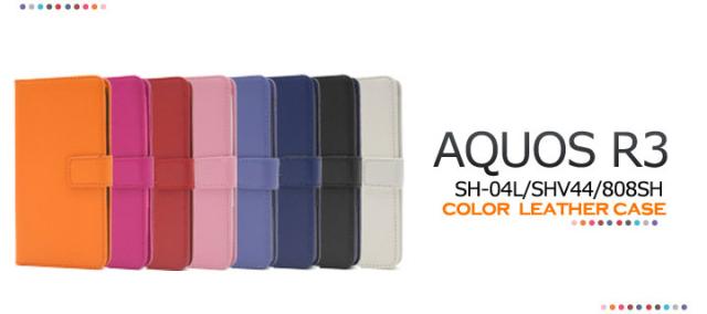 AQUOSR3 SHV44 808SHL レザー 手帳型 ケース カバー カード収納 3枚 動画スタンド ストラップ対応 おしゃれ かわいい 人気 ブラック ホワイト ブルー レッド ピンク ブック アクオスアール3 メール便送料無料