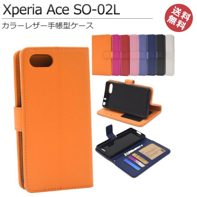 XperiaAceSO-02L レザー 手帳型 ケース カバー カード収納 3枚 ポケット 動画スタンド ストラップ対応 ブラック ホワイト ブルー レッド ピンク オレンジ エクスペリアエース おしゃれ かわいい 人気 メール便送料無料