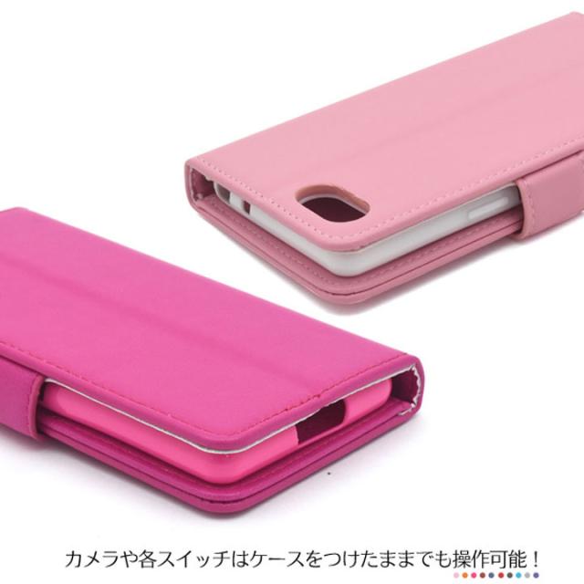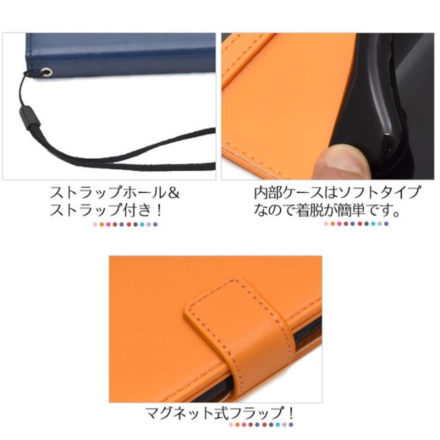 カラフルなカラーレザー手帳型ケース。衝撃やキズなどから守ります。また、内部はソフトケースなので着脱が簡単です。