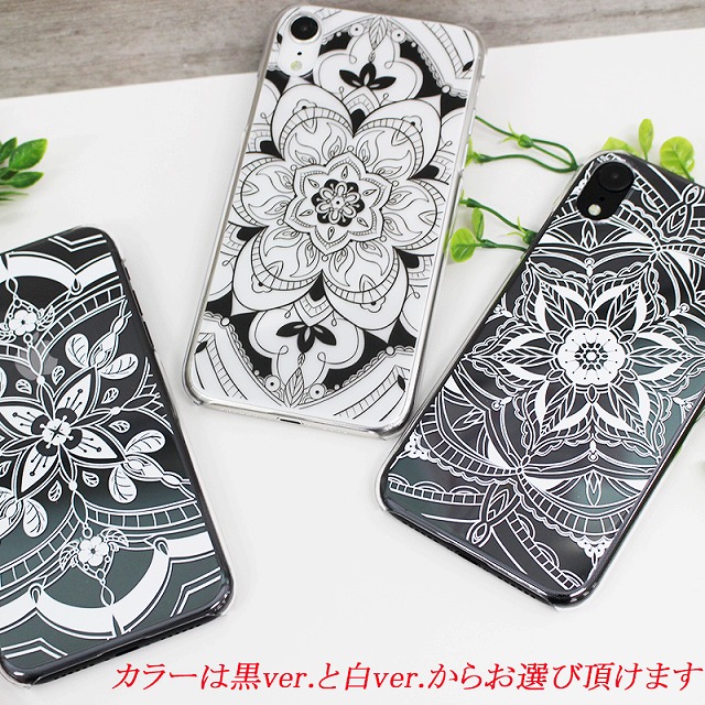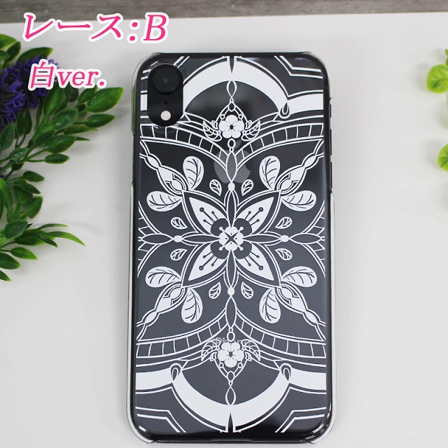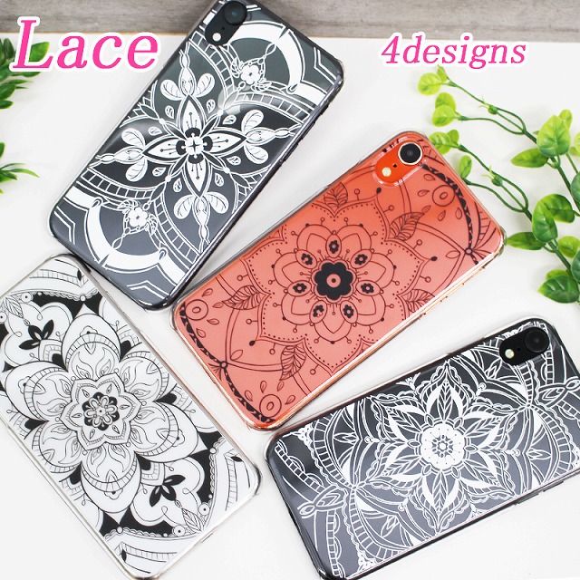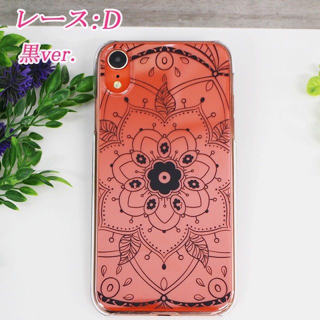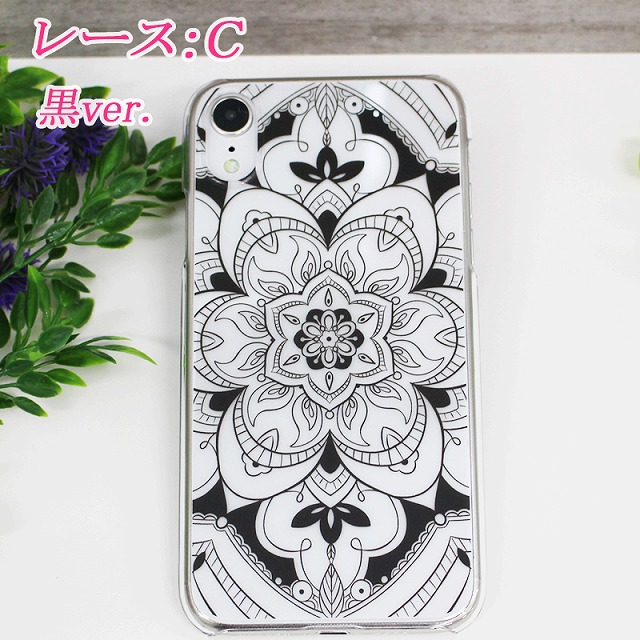 クリアハードケースに印刷したレース柄のブラックとホワイトの2色パターン。