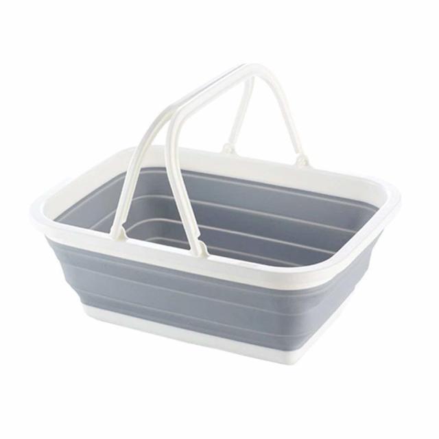 折りたたみバケツ シリコン 洗い桶 シリコン 折りたたみ かご キッチン 折りたたみ バケツ キャンプ 洗濯機 グレー (取っ手付き 長方形) モノトーン シリコーン おしゃれ ハイキング アウトドアに最適